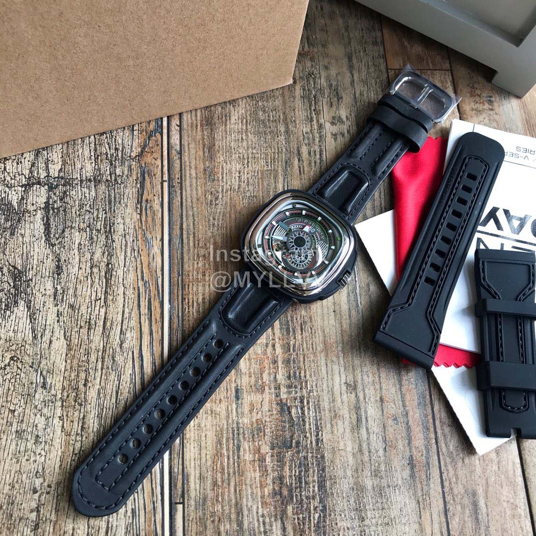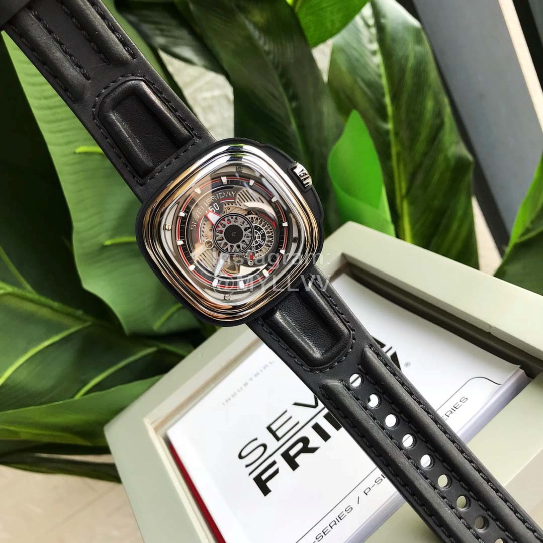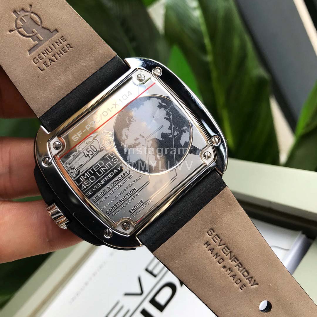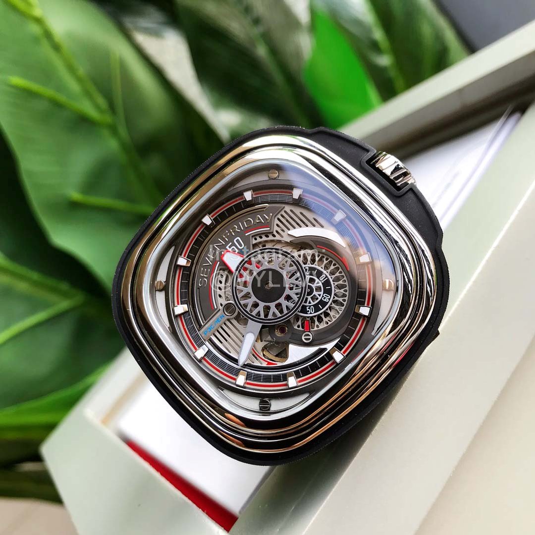 Sf-p3c01 sevenfriday p3c01 is a limited edition watch in addition to the above series of products, with only 450 pieces produced worldwide; The movement is an imported Miyota 82s7 fully automatic mechanical watch, on which is an open balance wheel, which can provide 40 hours of kinetic energy reserves; The table adopts sevenfriday app The application program realizes the compatibility inspection with NFC technology; The watch has a polished stainless steel metal shell and a polished seat ring cover ring. The seat ring is equipped with a black concave partition; P3c01 watch has a high resistance black rubber band ring and is equipped with anti-collision extension device (3H). The front of the watch is complex and consists of five layers, including 22 application parts, which are made of bronze and metal rhodium, black, and the surface is treated with matte treatment, marble notch treatment, fine sand blasting and polishing in turn