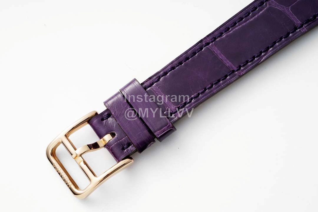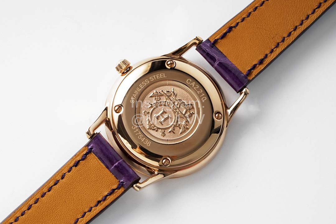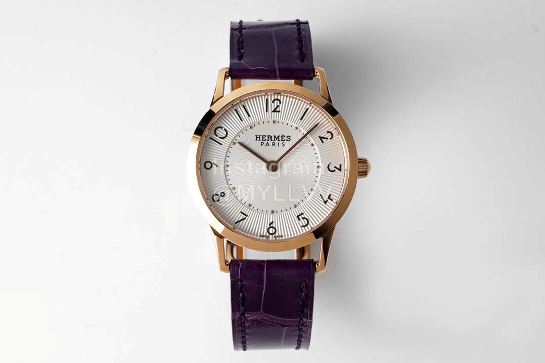 Slim D’Hermes Baton Pointer Leather Strap Watch Purple