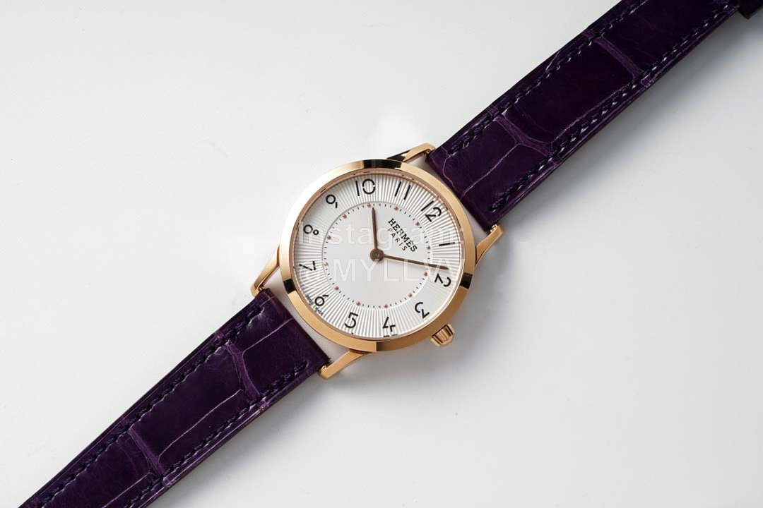 Slim d’hermes, written by Philippe delhotak, creative director of clocks and watches, expounds the graphic design style of the brand. The simple and transparent digital outline injects a vivid and lively rhythm into the dial and gives time a pleasing rhythm.