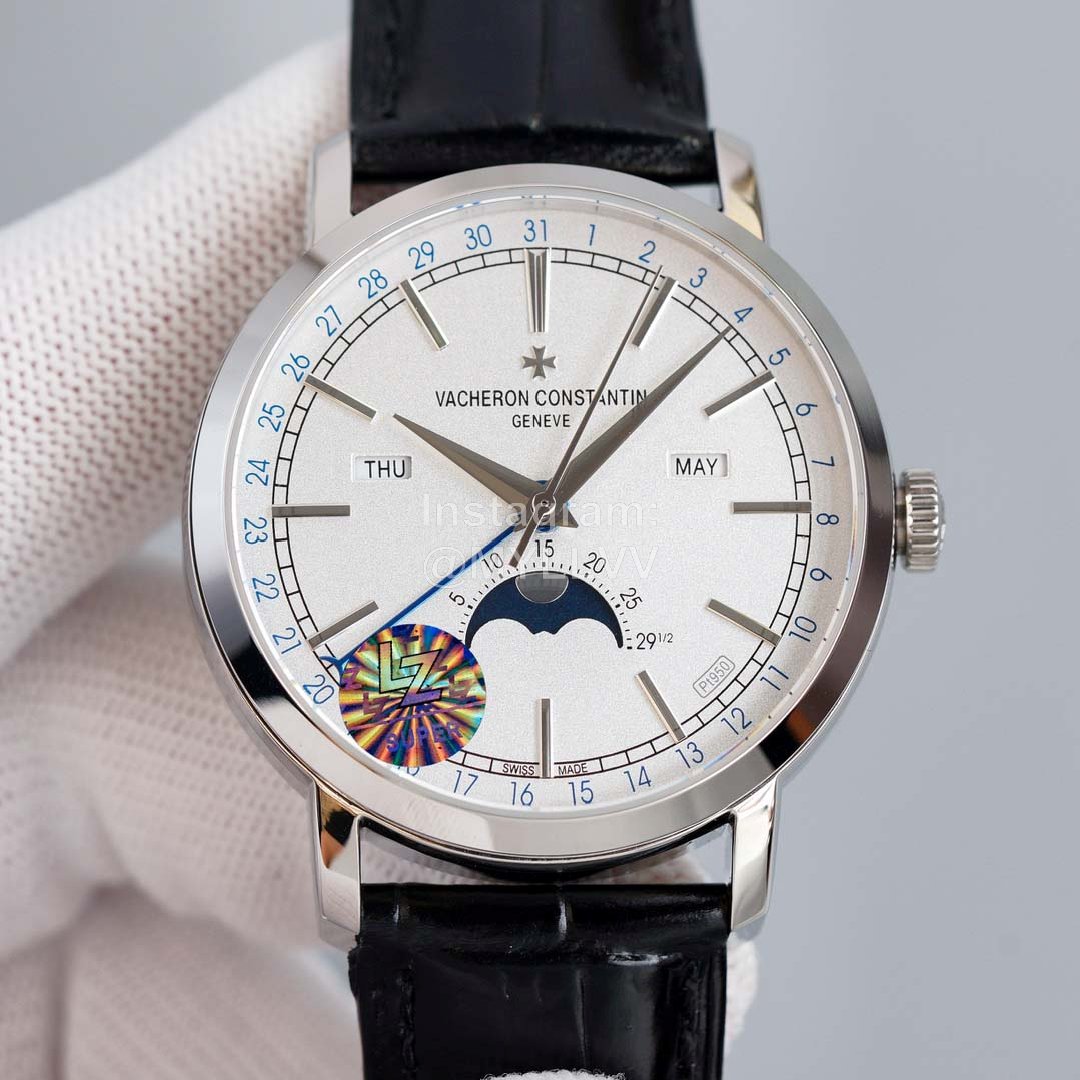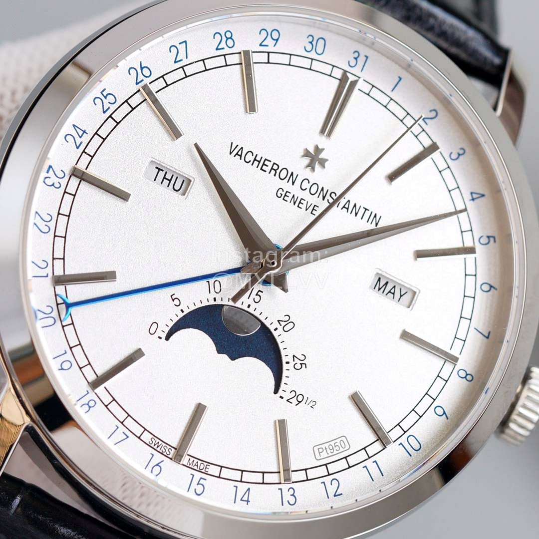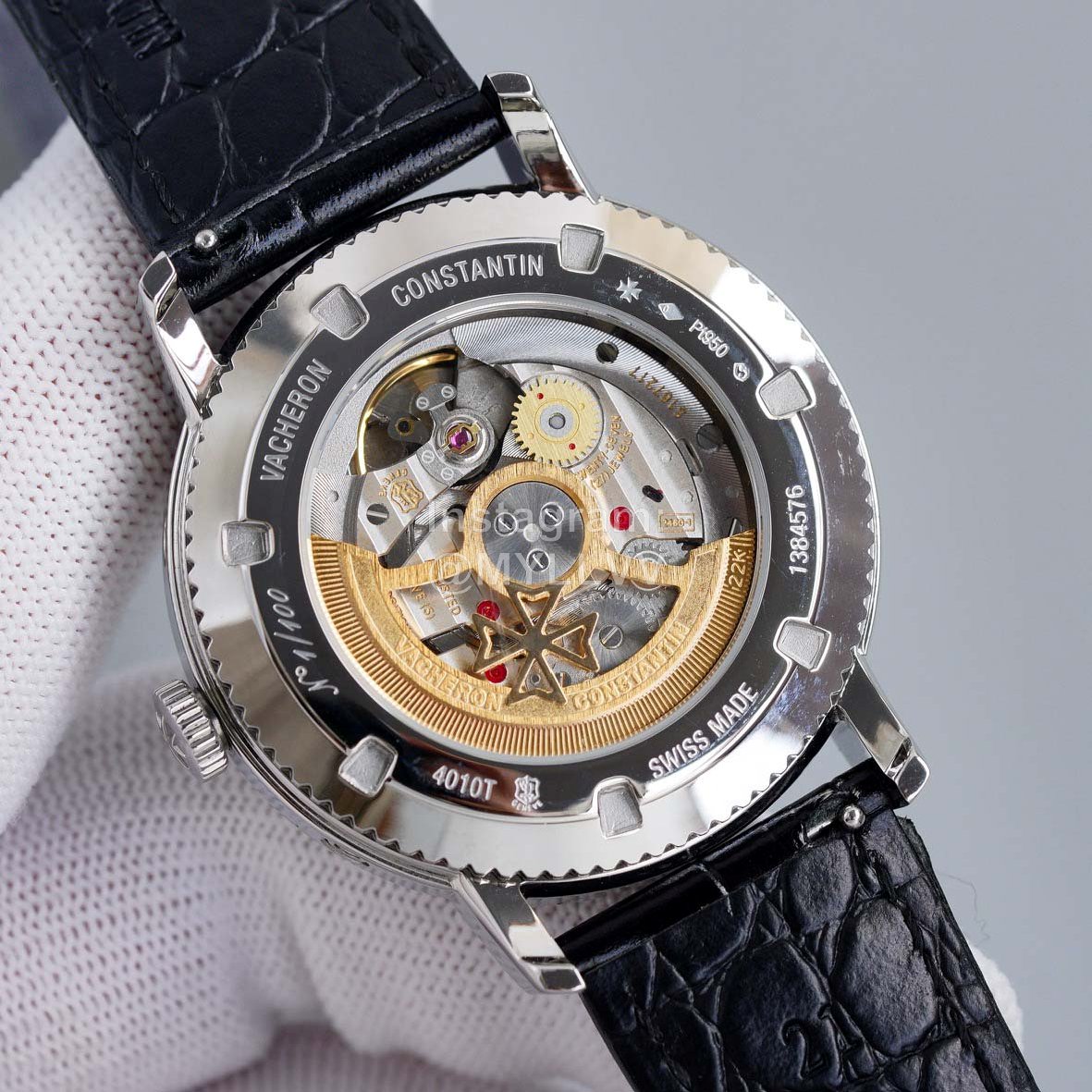 The new model of Vacheron Constantin limited collection series highlights a long-standing classic function in the mechanical watchmaking technology. With a full calendar, this elegant and elegant new TRADITIONNELLE inheritance series watch is carefully made of 316 fine steel and equipped with a new automatic movement. As the symbolic aesthetic feature of this respected series, 316 material runs through the overall design of the watch, with a case diameter of 41 meters, a waterproof depth of 30 meters, a sand blasting dial, a “pt950” mark between 4 and 5 points, a folding buckle, a dark blue black brown double-sided strap, a stepped case and ear, and a grooved bottom cover, The balance wheel position Geneva mark (eagle and key) bearing middle clamp is inlaid with ruby to make the back and bottom more noble and luxurious. The track type minute scale ring, sword shaped hour and minute hands, and rod-shaped time scale clearly present aesthetic characteristics. The blue Arabic numeral date indication complements the simple and pure dial. The week and month window is located symmetrically on the edge of the dial, The date is indicated by the blue central pointer. It is a practical and exquisite complex function. The full calendar also combines the low-key elegance of the tradition Nelle series, and promotes the noble characteristics of the work, which is balanced, pure, concise and easy to read