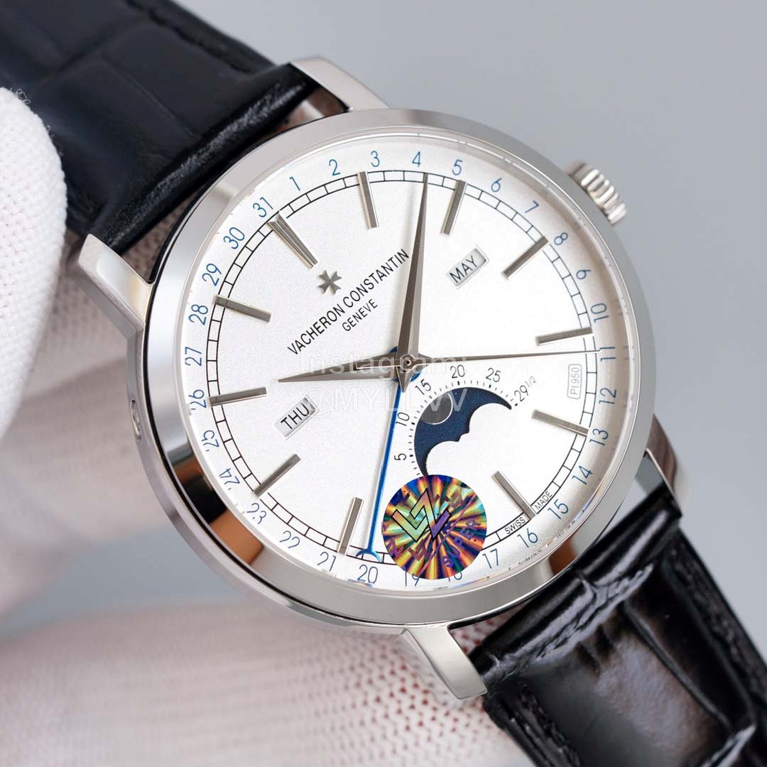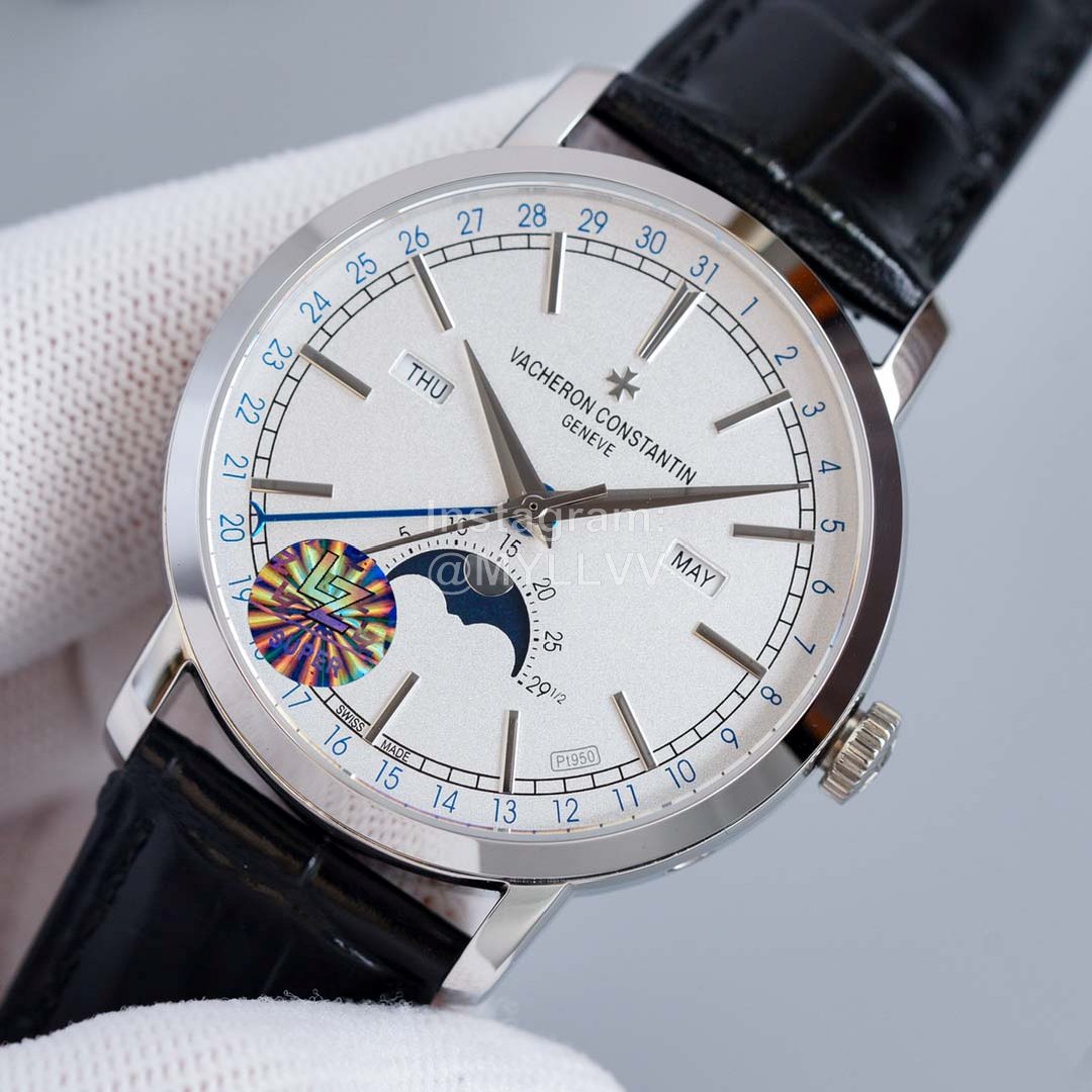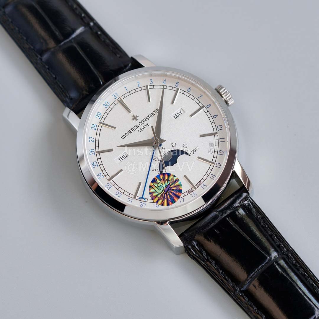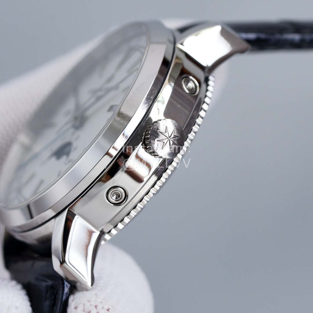The new model of Vacheron Constantin limited collection series highlights a long-standing classic function in the mechanical watchmaking technology. With a full calendar, this elegant and elegant new TRADITIONNELLE inheritance series watch is carefully made of 316 fine steel and equipped with a new automatic movement. As the symbolic aesthetic feature of this respected series, 316 material runs through the overall design of the watch, with a case diameter of 41 meters, a waterproof depth of 30 meters, a sand blasting dial, a “pt950” mark between 4 and 5 points, a folding buckle, a dark blue black brown double-sided strap, a stepped case and ear, and a grooved bottom cover, The balance wheel position Geneva mark (eagle and key) bearing middle clamp is inlaid with ruby to make the back and bottom more noble and luxurious. The track type minute scale ring, sword shaped hour and minute hands, and rod-shaped time scale clearly present aesthetic characteristics. The blue Arabic numeral date indication complements the simple and pure dial. The week and month window is located symmetrically on the edge of the dial, The date is indicated by the blue central pointer. It is a practical and exquisite complex function. The full calendar also combines the low-key elegance of the tradition Nelle series, and promotes the noble characteristics of the work, which is balanced, pure, concise and easy to read
