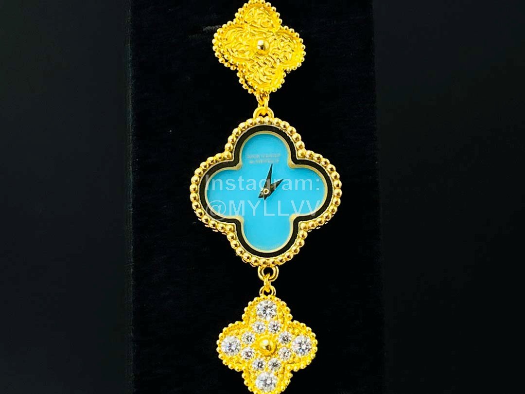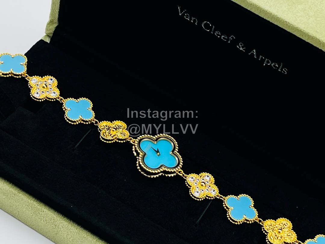 Van Cleef Arpels Sweet Alhambra Mini Dial Bracelet Watch Sky Blue