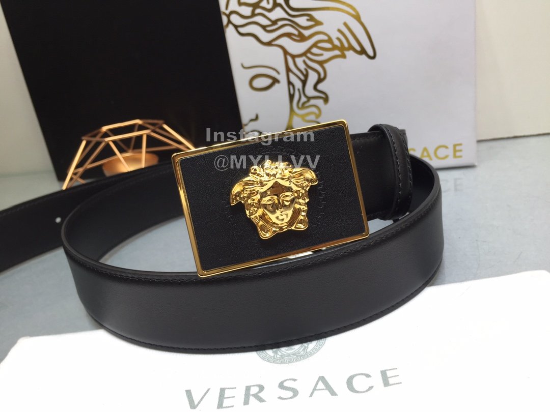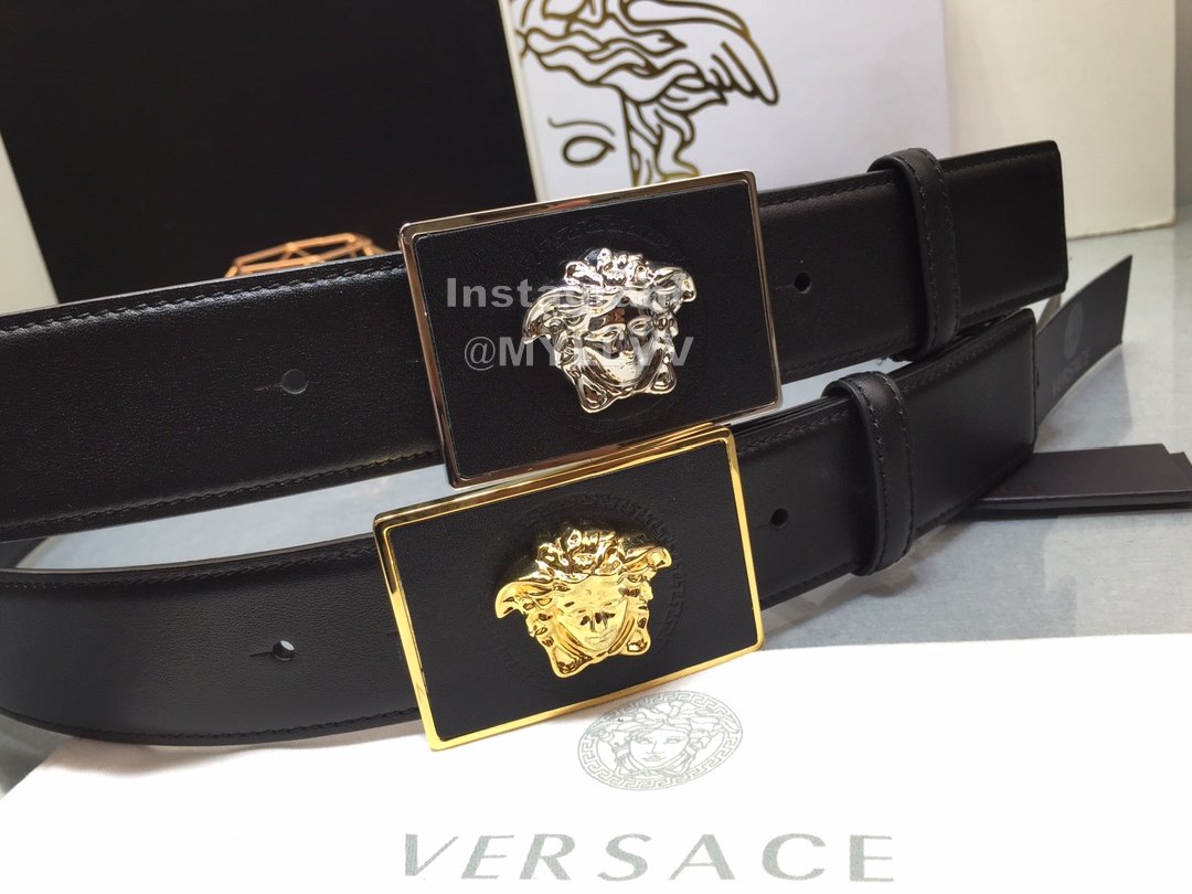 Versace Fashion Calf Leather Medusa Square Gold Buckle 40mm Belt