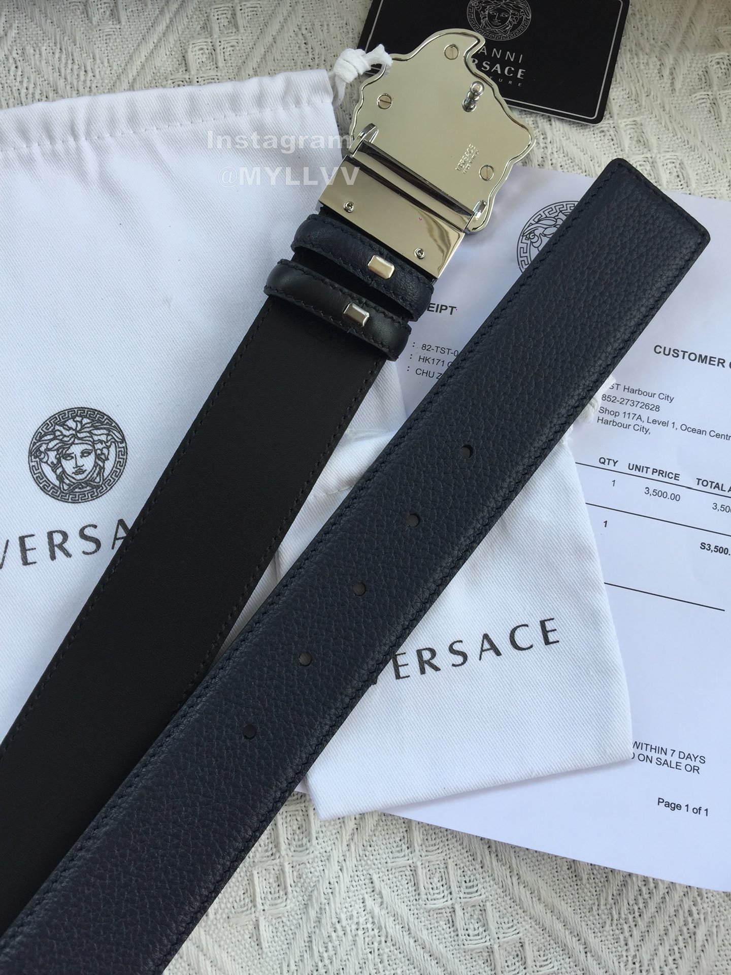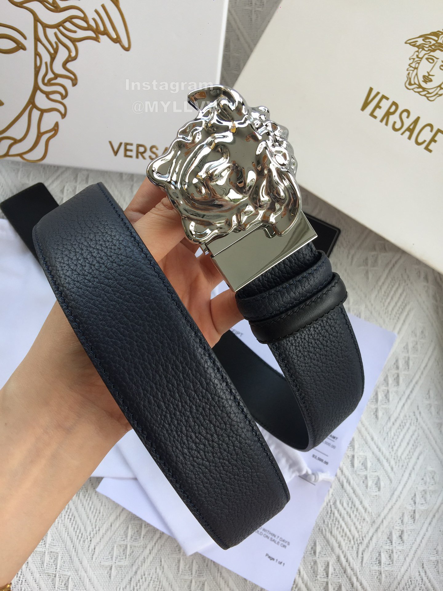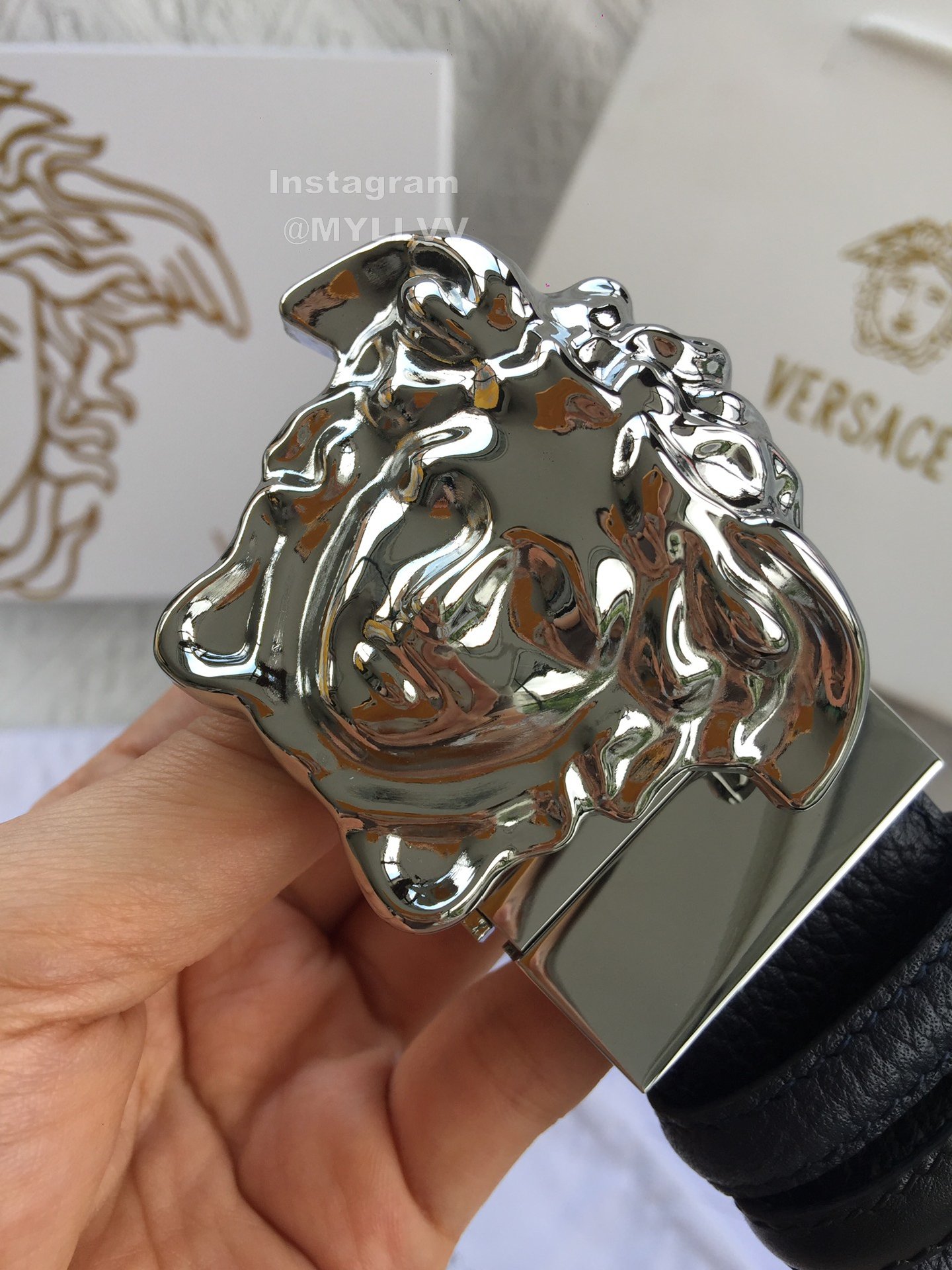 Versace Fashion Leather Silver Medusa Buckle Belt