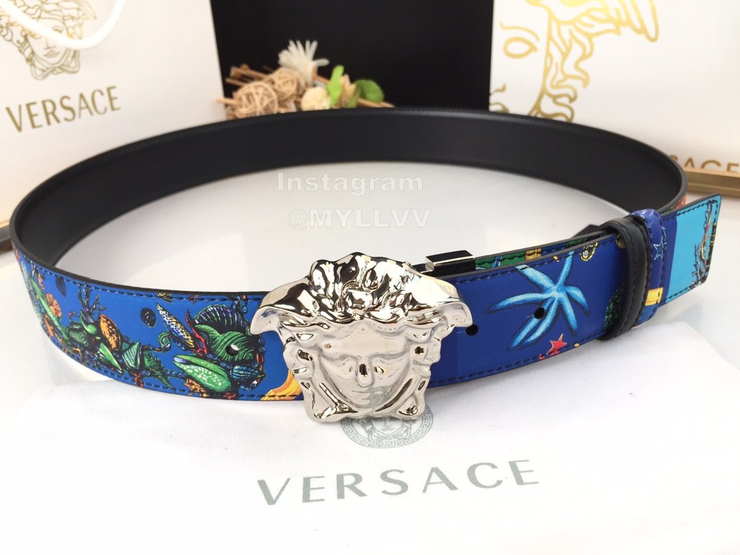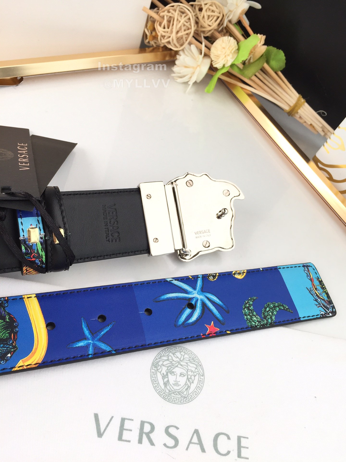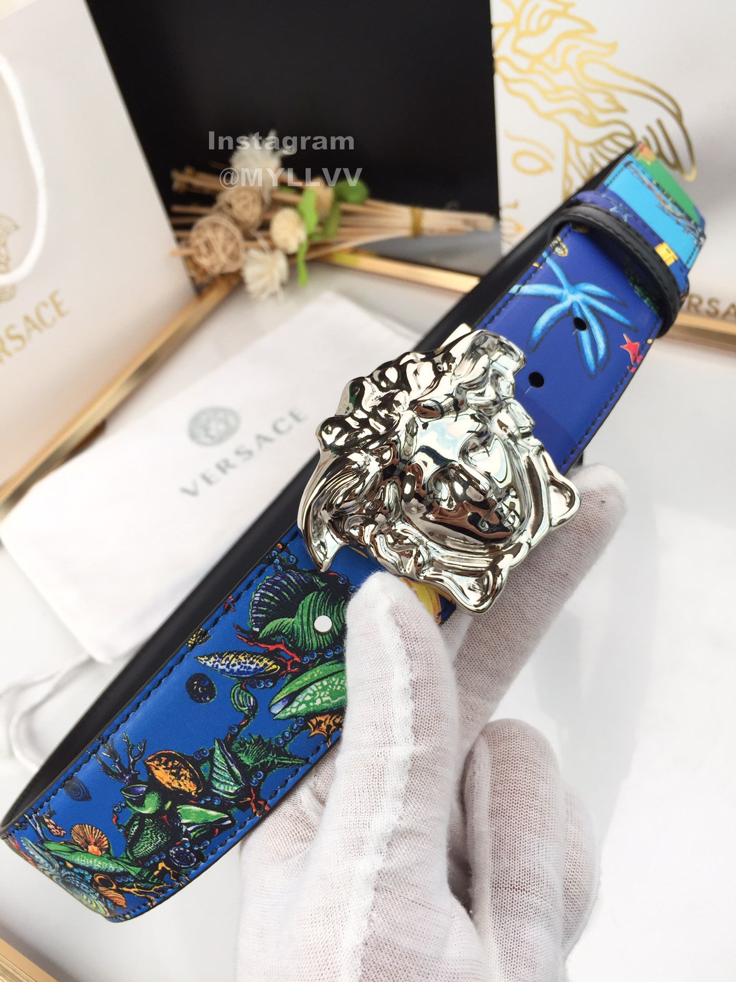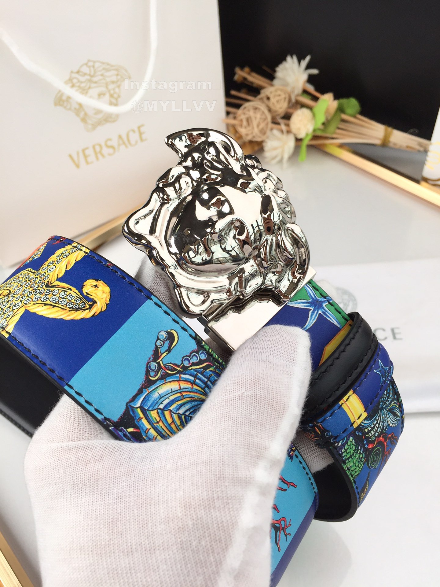 Versace Fashion Printed Calf Leather Silver Medusa Buckle 40mm Belt Blue