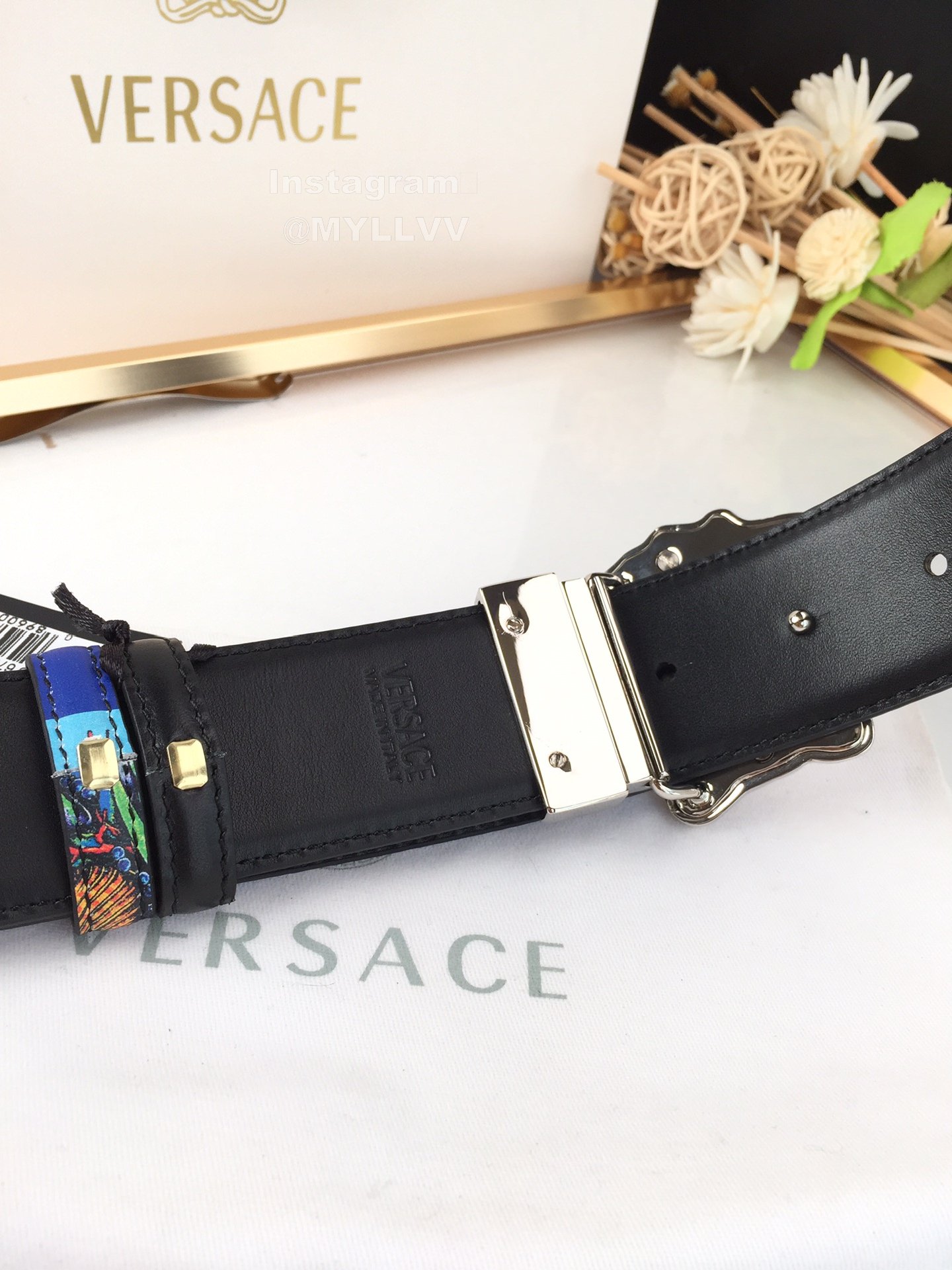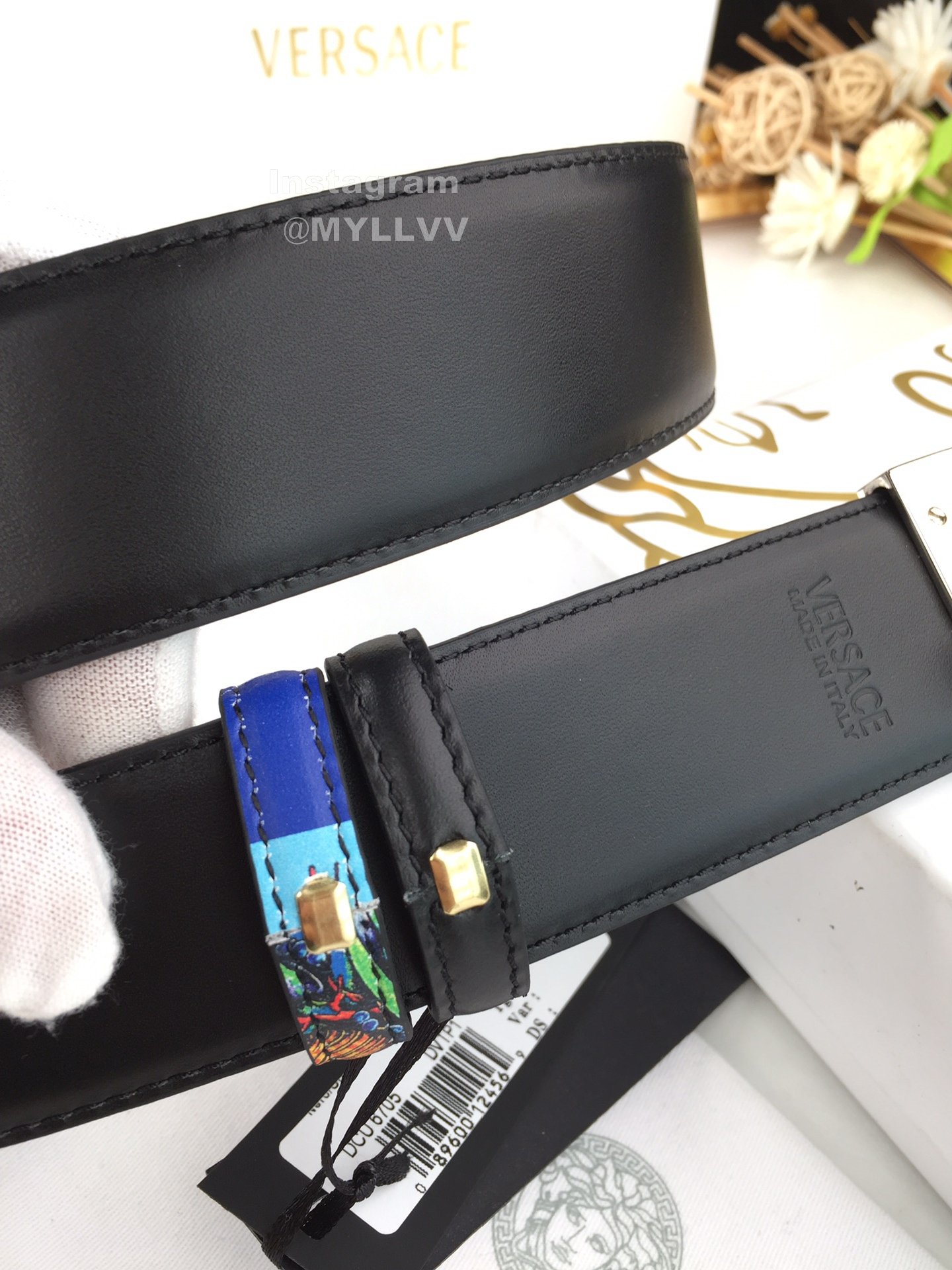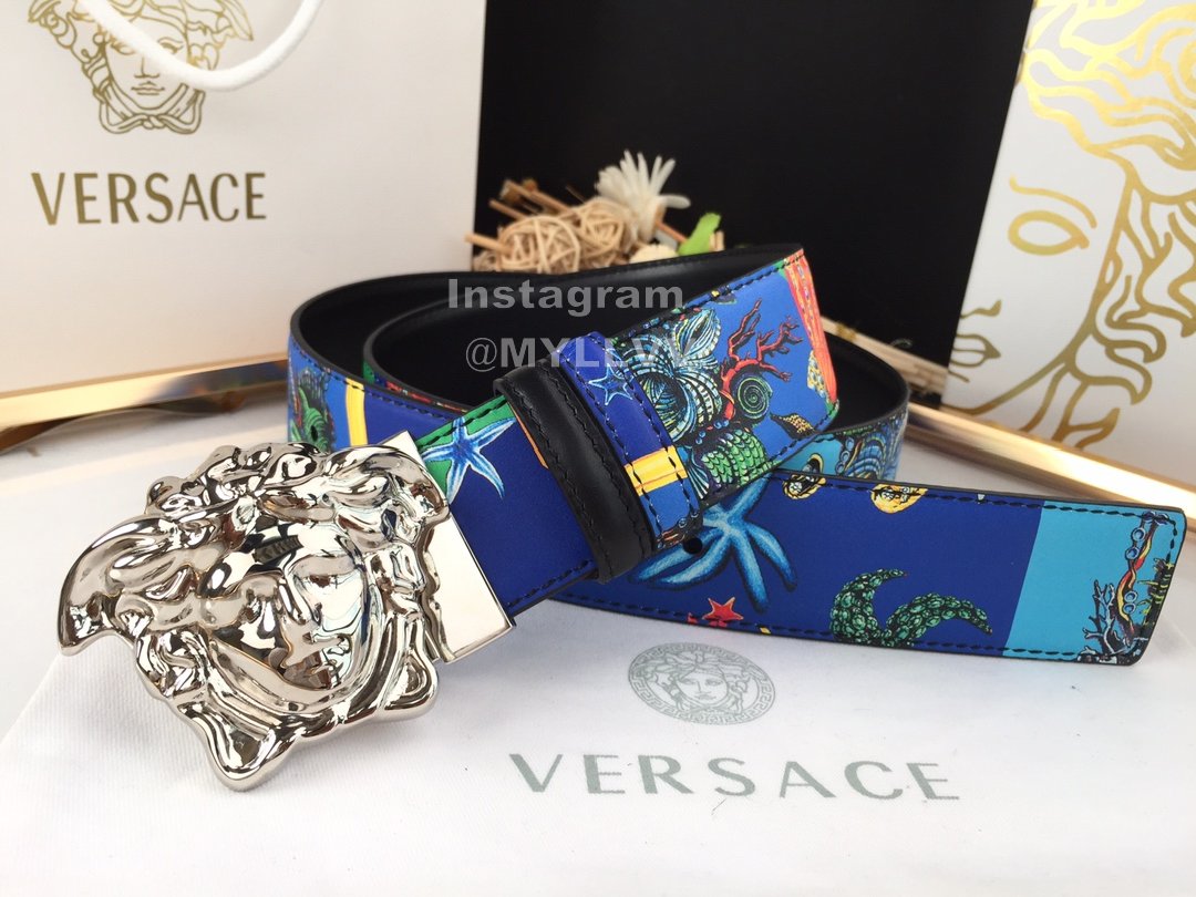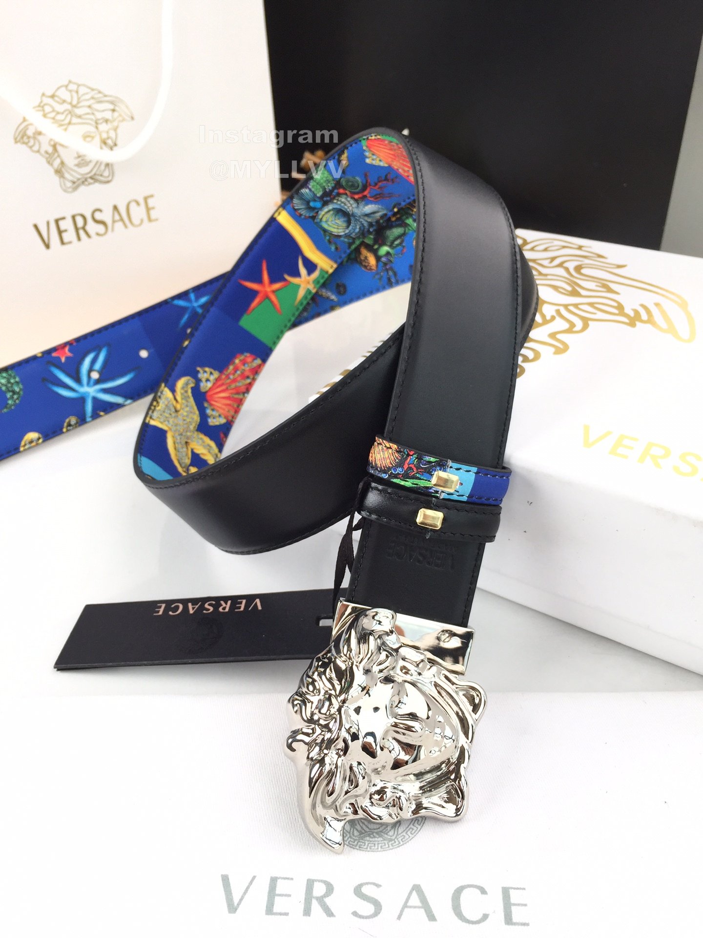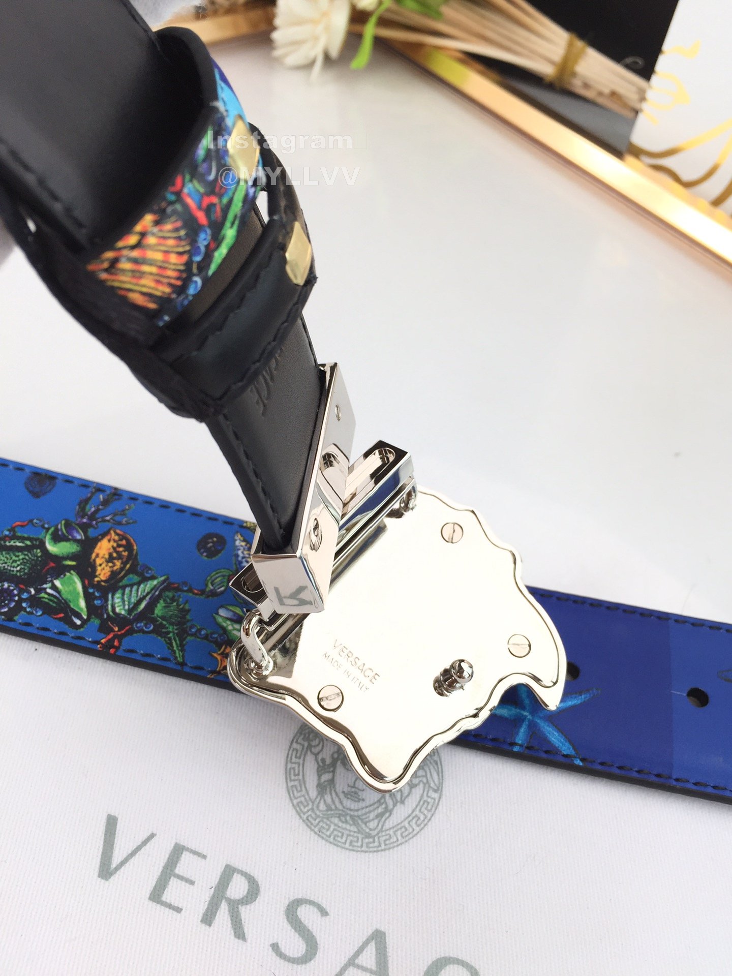 Versace Fashion Printed Calf Leather Silver Medusa Buckle 40mm Belt Blue