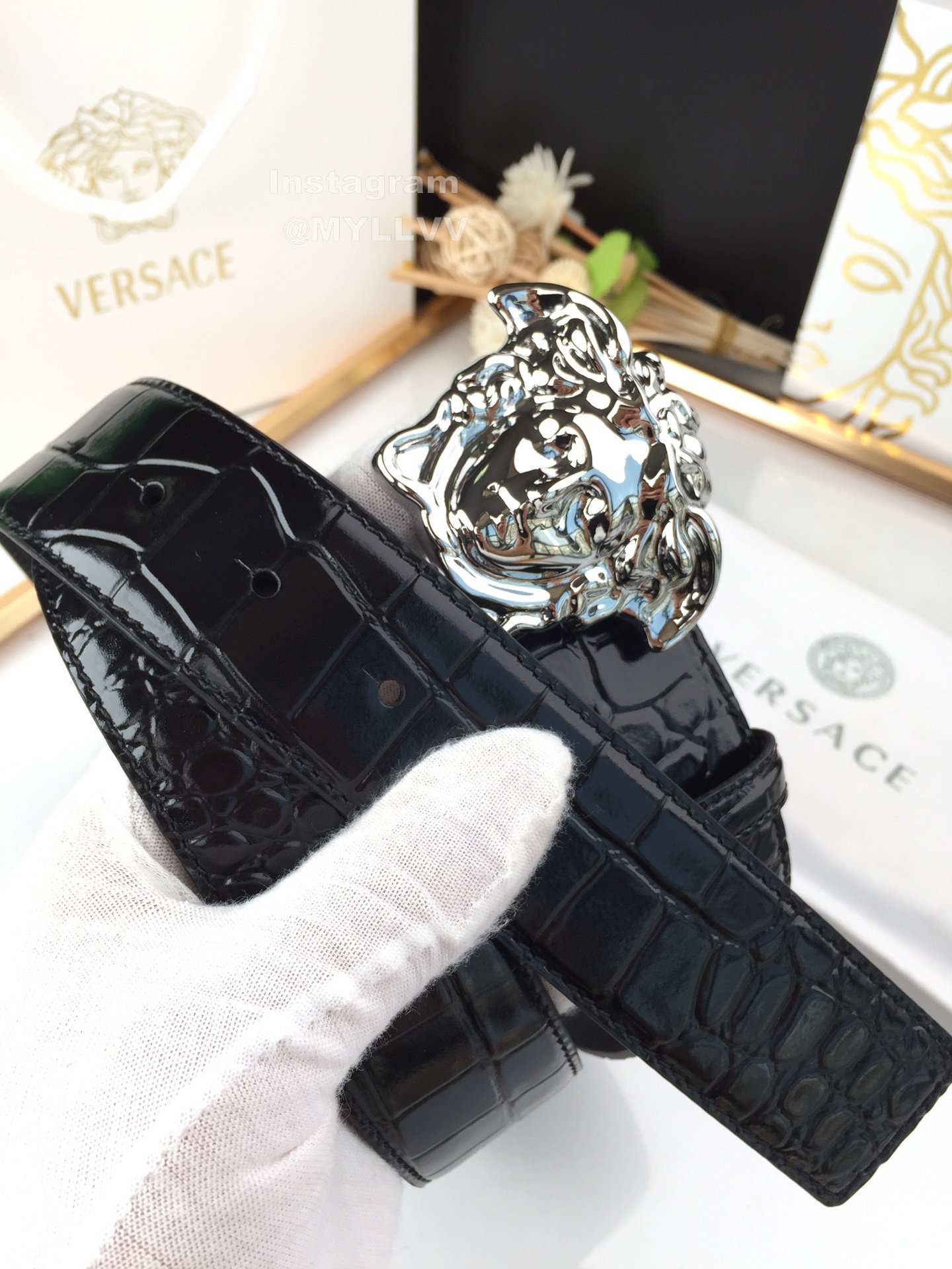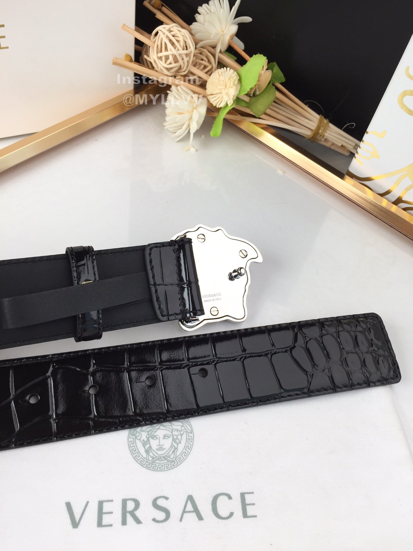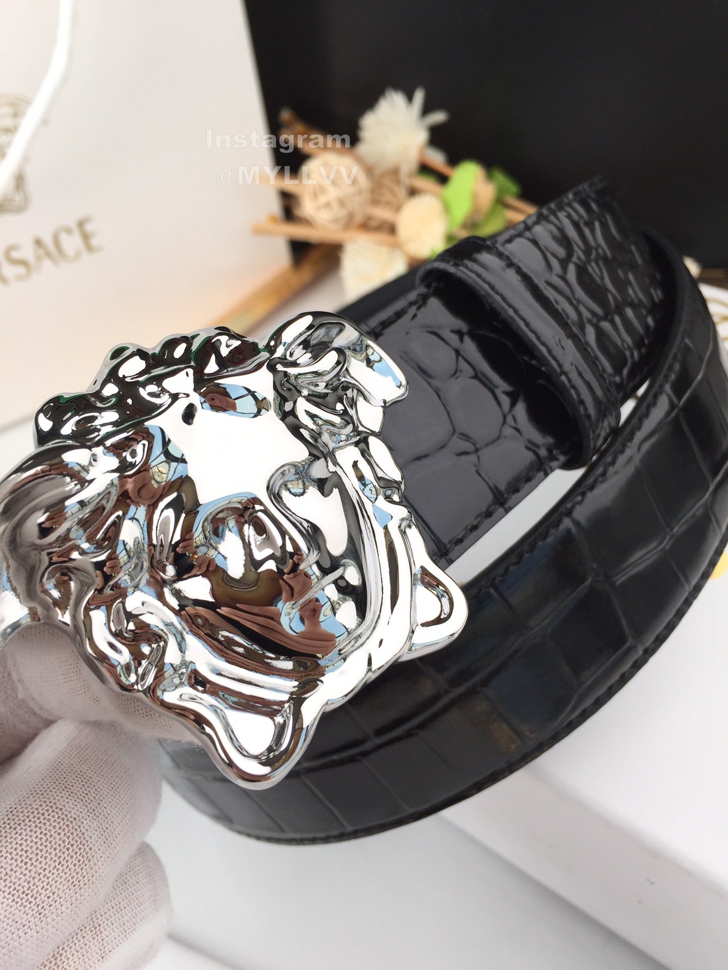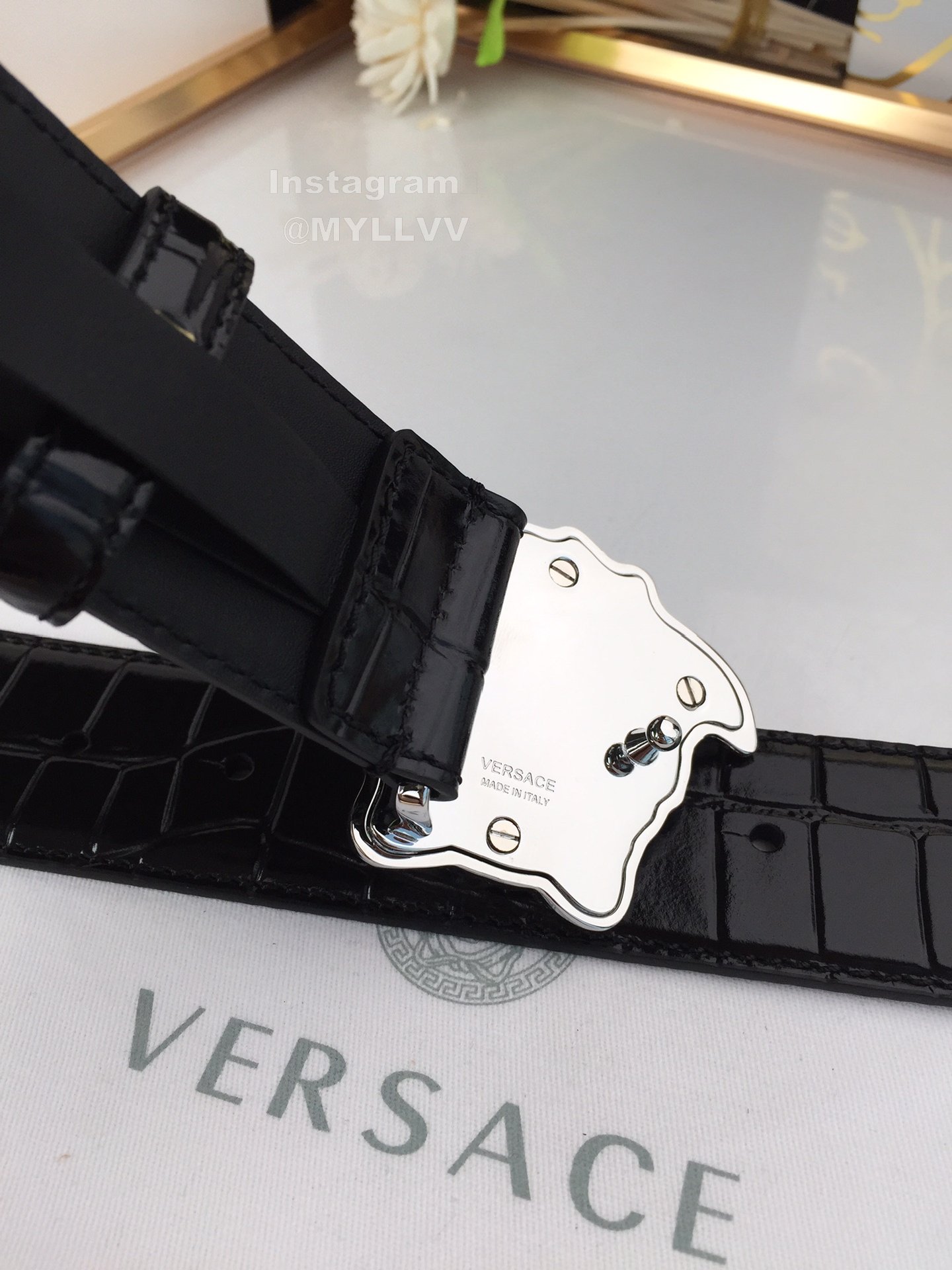 Versace New Black Calf Leather Silver Medusa Buckle 40mm Belt