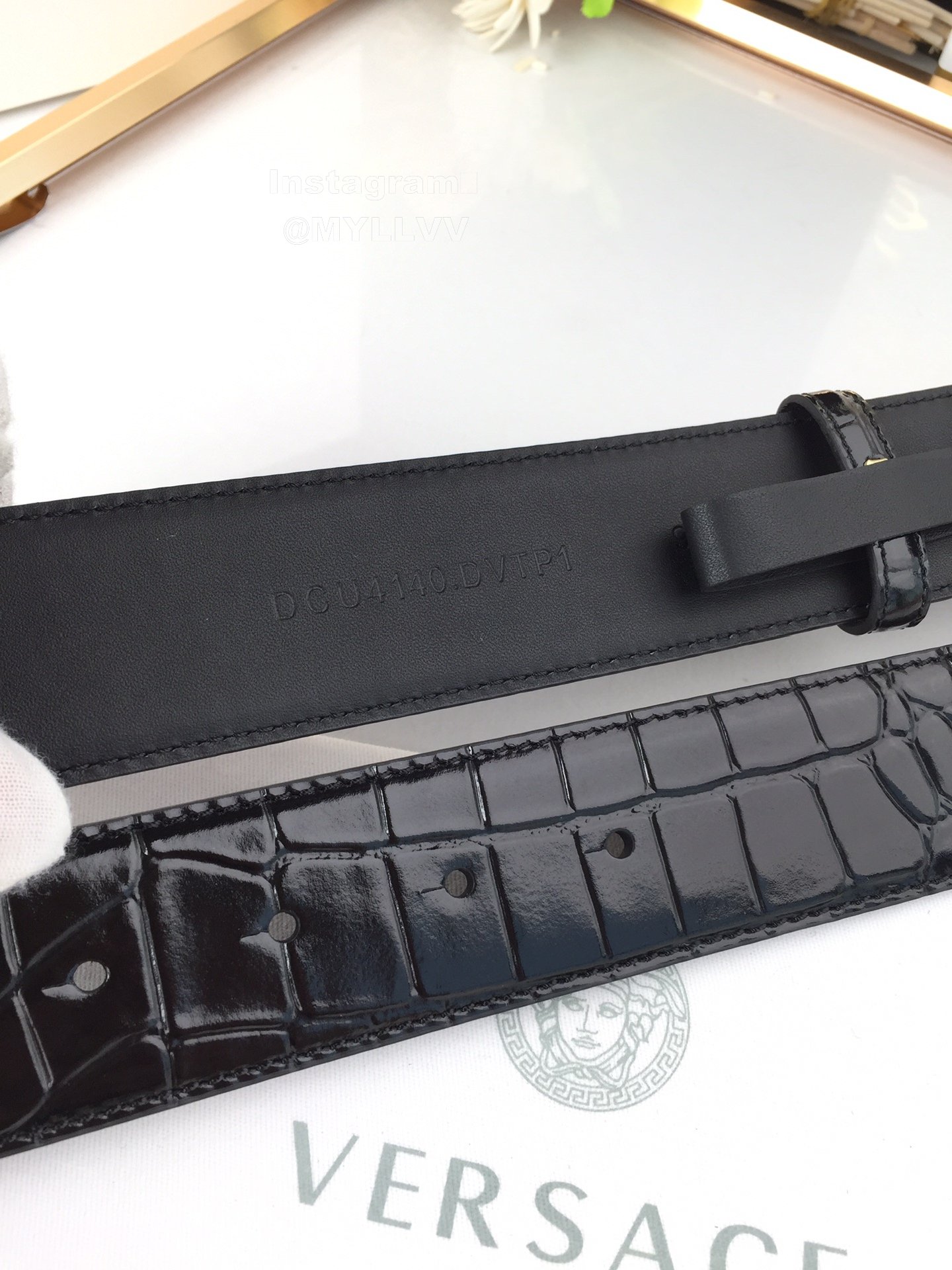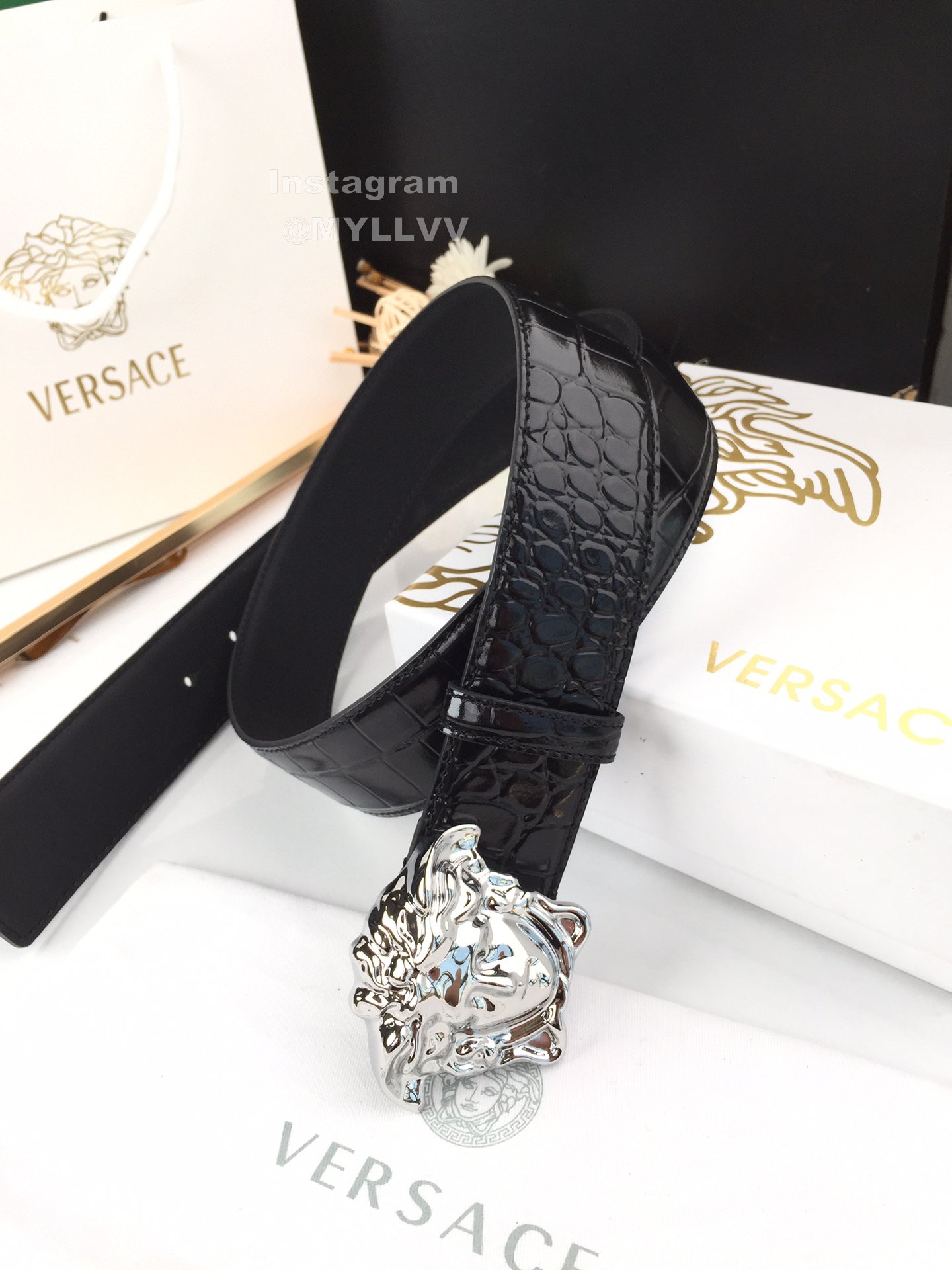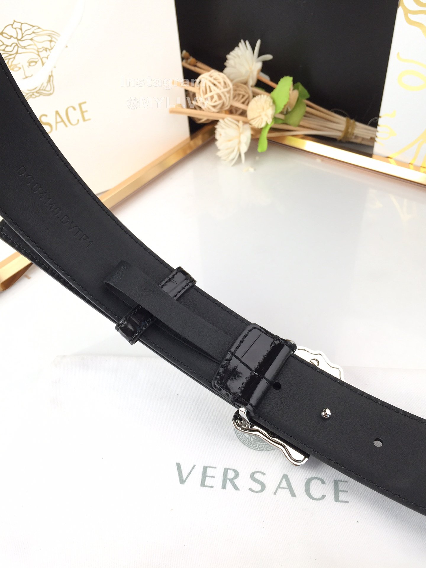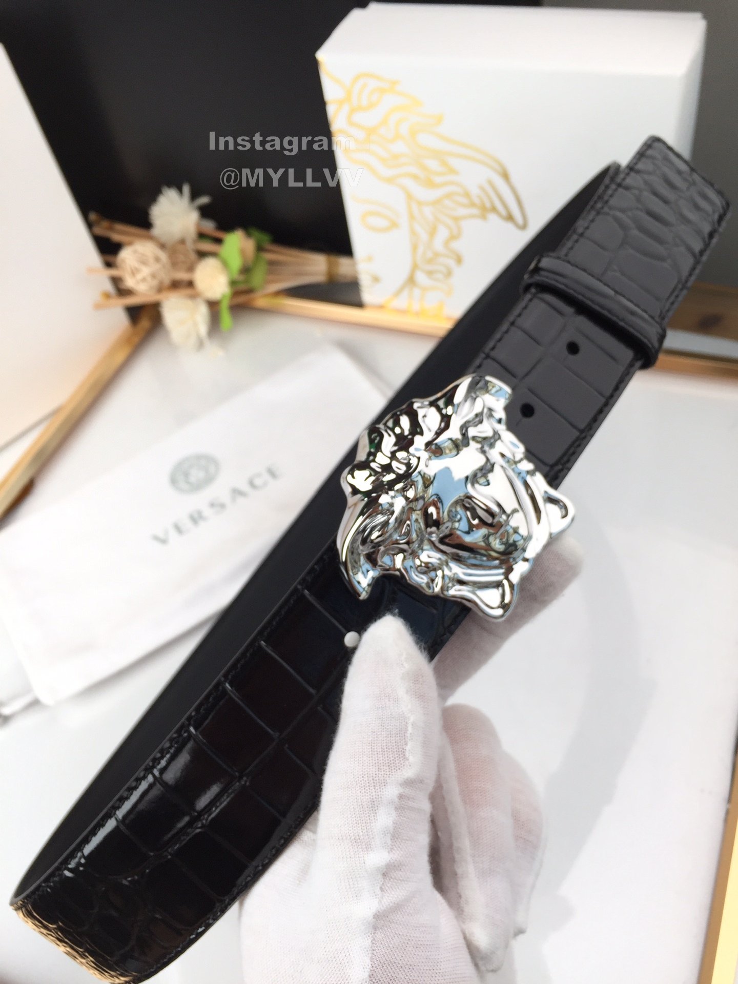 Versace New Black Calf Leather Silver Medusa Buckle 40mm Belt