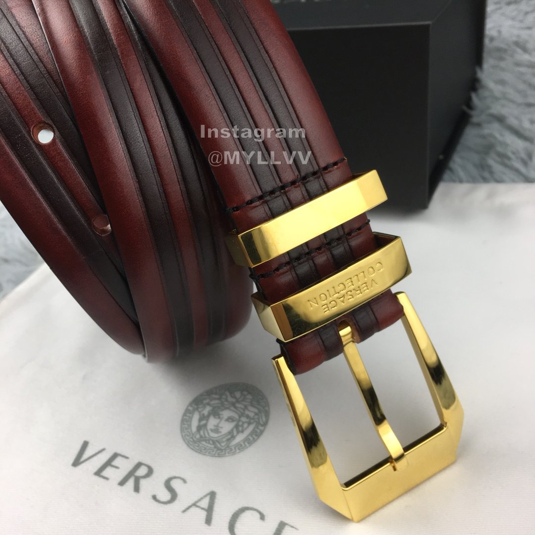 Versace New Leather Pin Buckle 35mm Business Leisure Belt Wine Red
