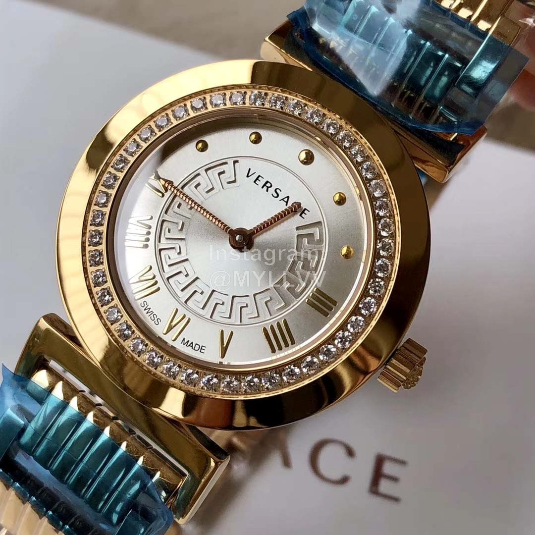 Versace p5q diamond inlaid quartz women’s watch, with Greek palindromes on the outer ring, Roman numerals and dots to show the time, inheriting the classic, retro and diverse colors