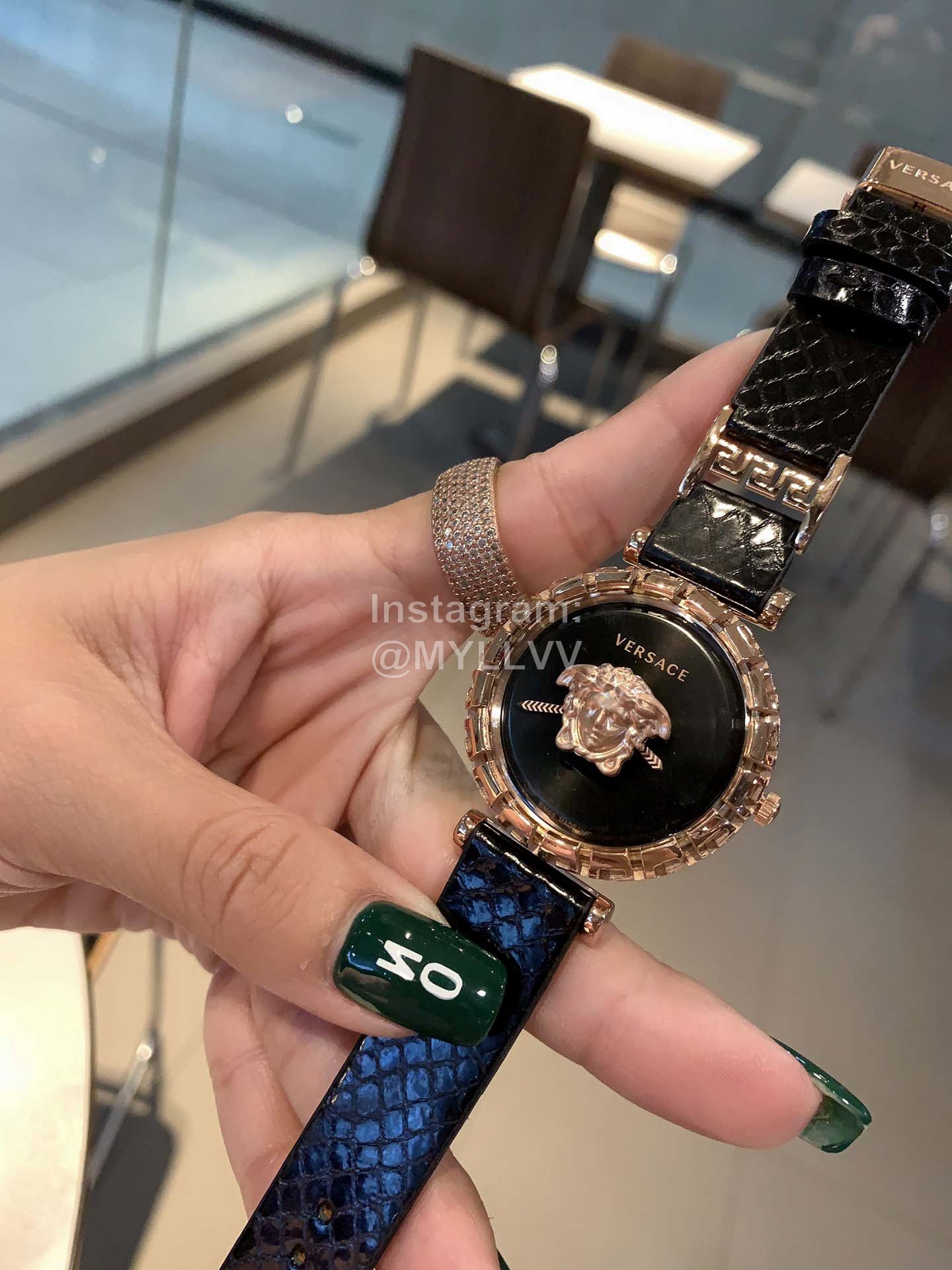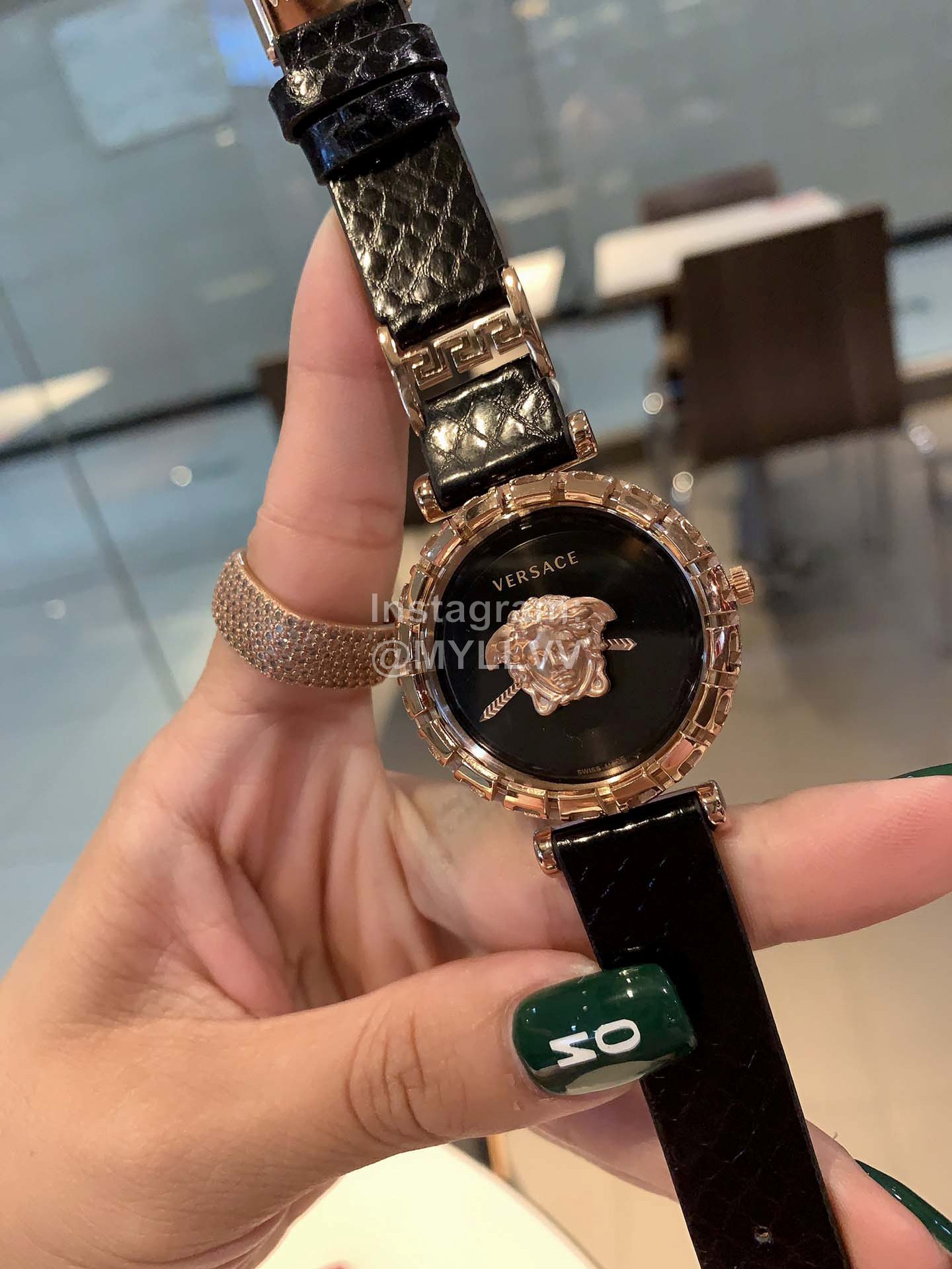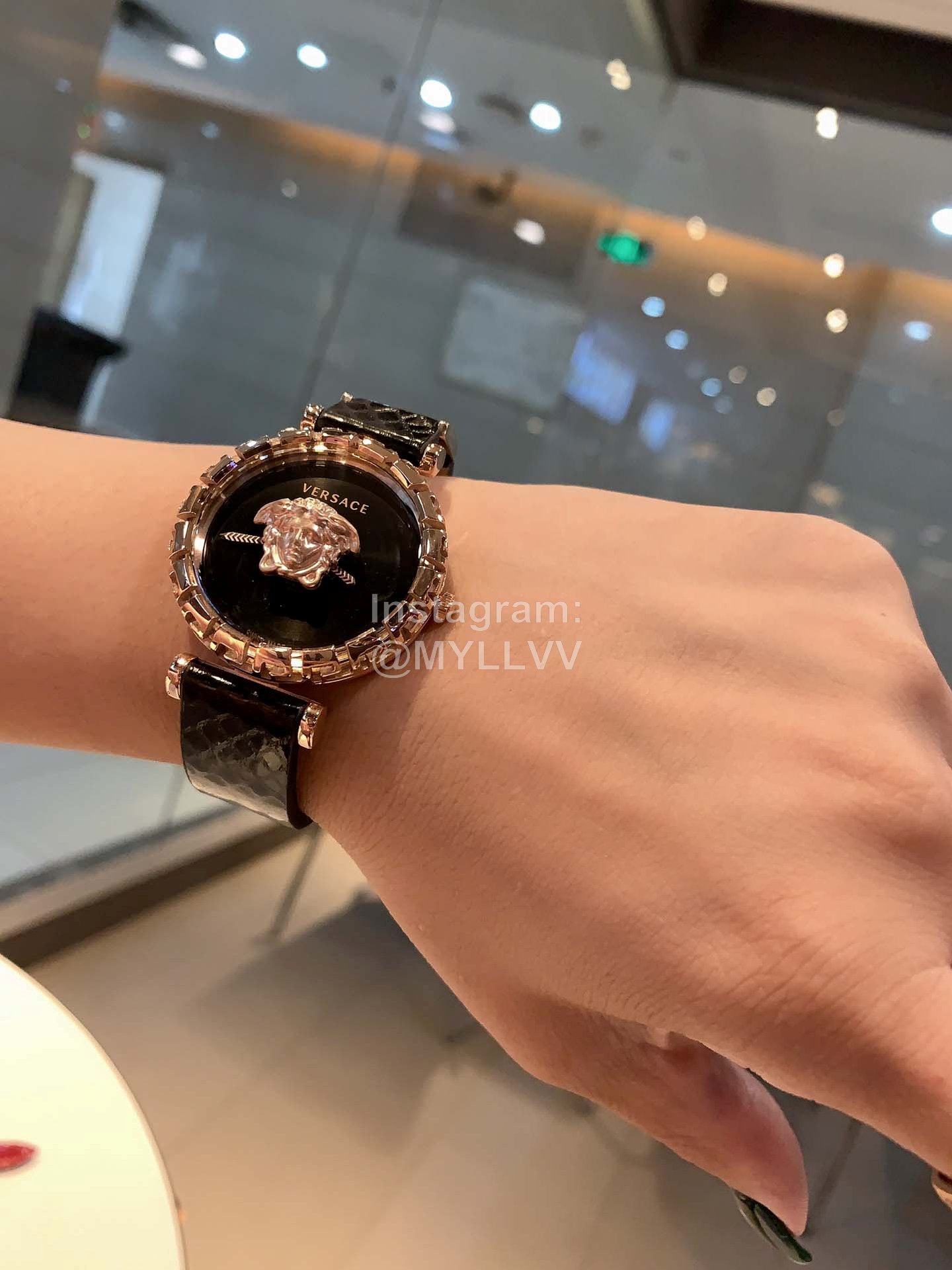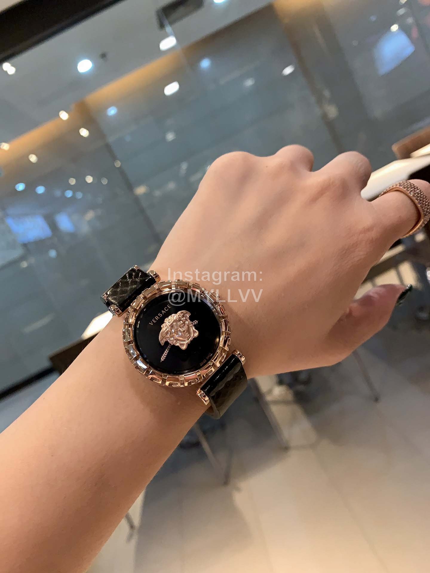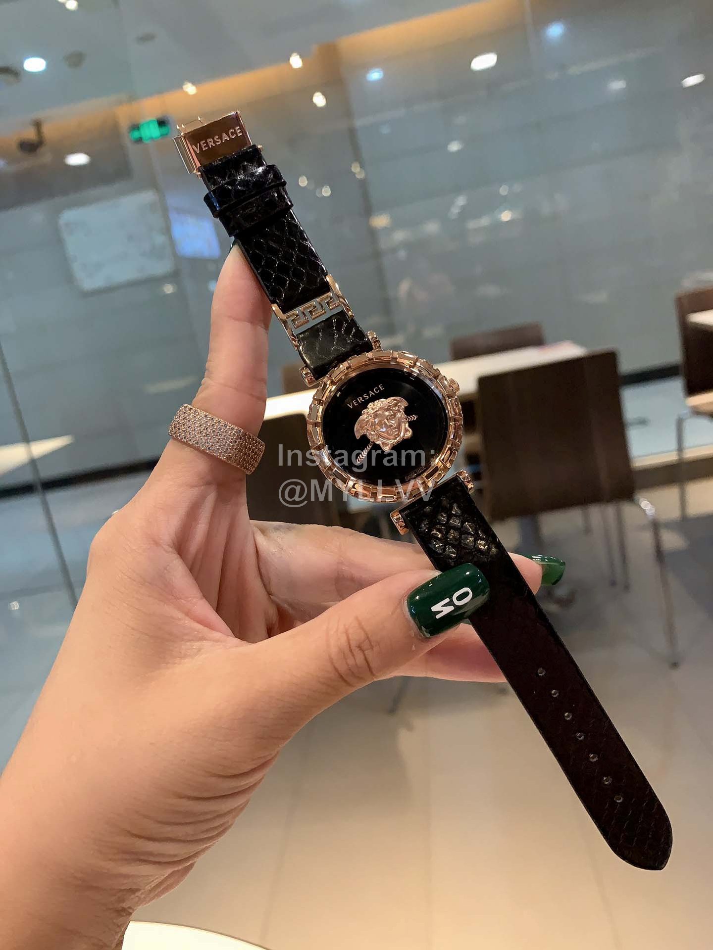New – Versace this Palazzo Empire Greek wristwatch is decorated with a medusa in the center of the dial, and the case is engraved with Greek wristbands, which is quite gorgeous. The dial is dotted with the Versace logo at 12 o’clock. Case: 37mm, 2-pin quartz Swiss movement, resin glass decorated with 3D Medusa, Greek palindrome top ring.